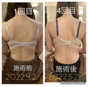 ふわふわマシュマロバストをつくる、salon Kaoriおすすめ!バストマップマッサージコース!!きちんとご来店いただくことで、食事制限なしで、ここまで変わります!!こちらは2週間に1度のペースで1ヶ